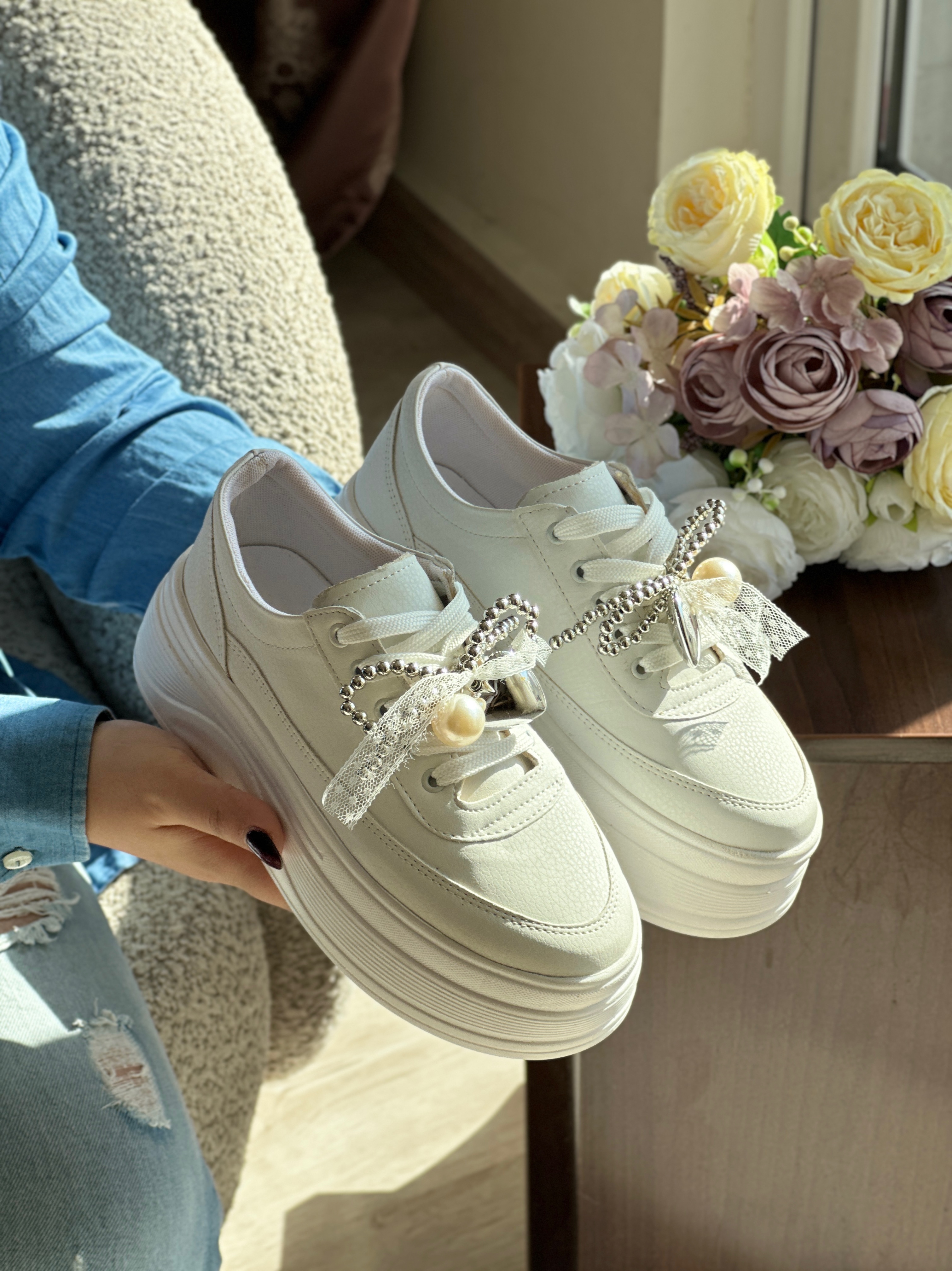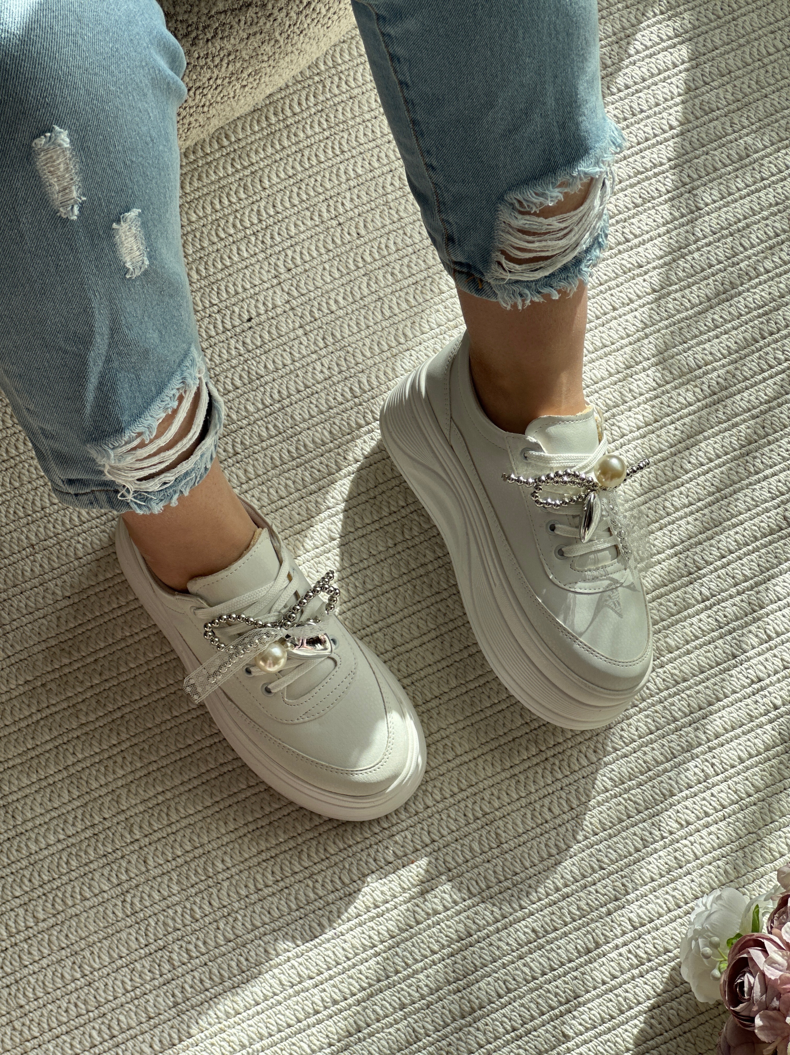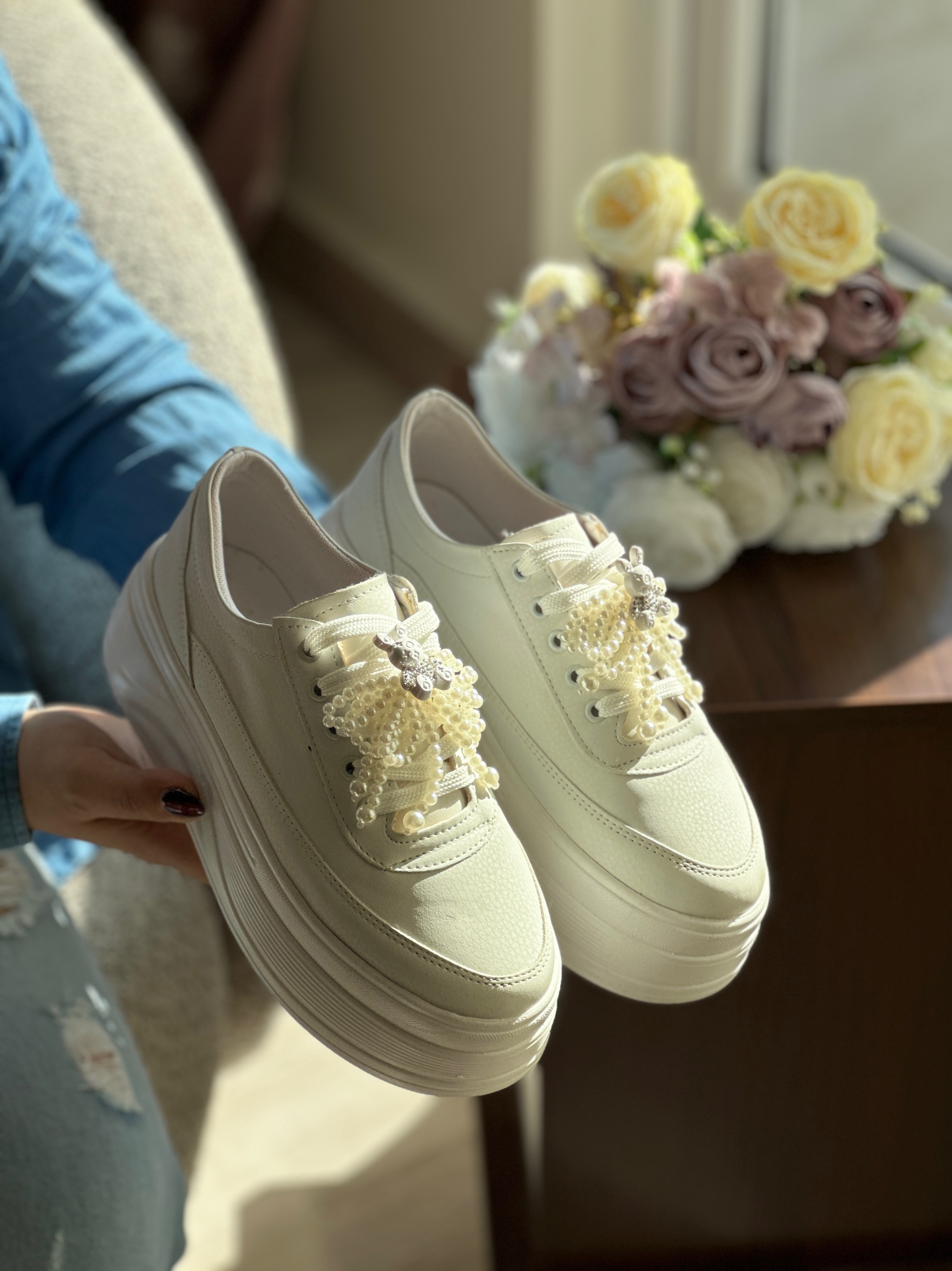 اگر دنبال یک کفش خاص، ترندی و در عین حال راحت برای استایل روزمره و اسپرت هستی، این ونس لژدار فانتزی سفید انتخابیه که هم قدت رو بلندتر نشون میده و هم استایلت رو متفاوتتر میکنه. طراحی مینیمال با جزئیات فانتزی روی بندها باعث شده این مدل هم برای استایلهای کیوت دخترانه مناسب باشه، هم برای ستهای ساده و شیک.