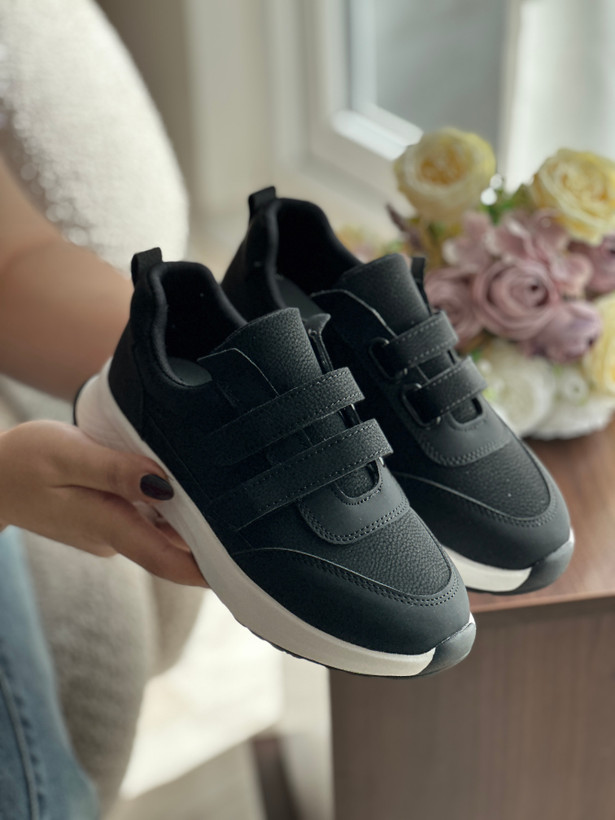 کتانی زنانه مشکی راحتی چسبی | کفش اسپرت سبک و مناسب پیادهروی روزمره