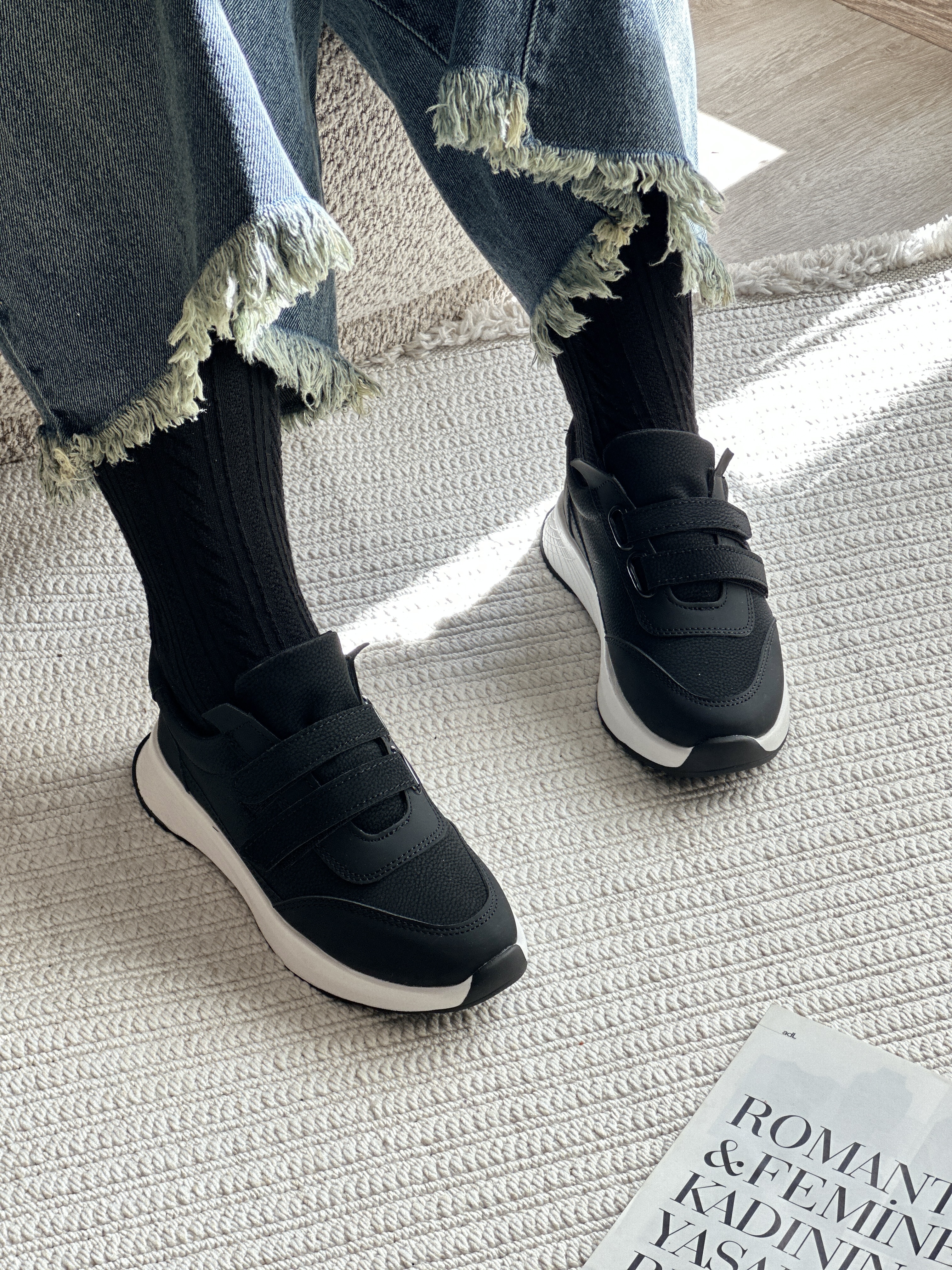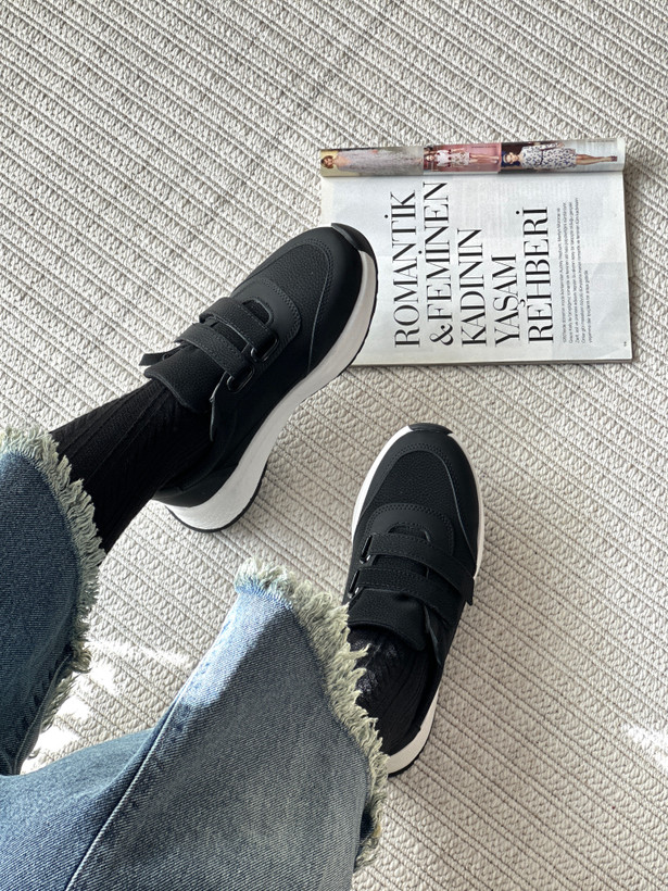 کتانی زنانه مشکی راحتی چسبی | ترکیب سادگی، راحتی و استایل روزمره