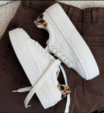 کفش ونس زنانه سفیدپلنگی اسنیکر راحتی روزمره بنددار