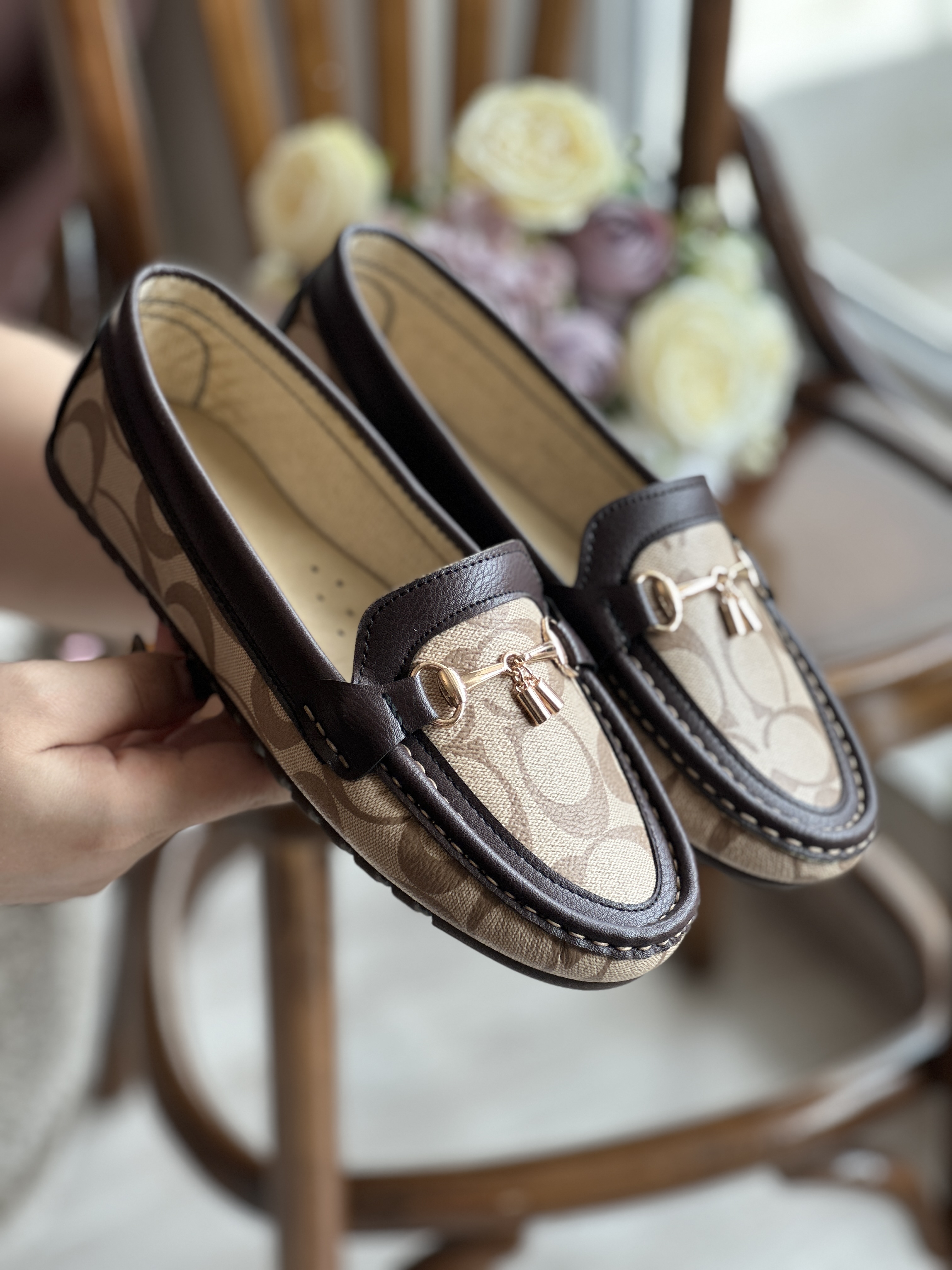 کالج راحتی زنانه طرح مونوگرام کرم قهوه‌ای | کفش کالج شیک و راحت زنانه