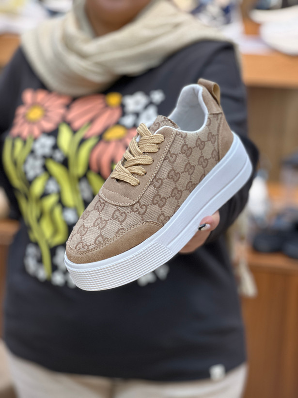 کتانی زنانه طرح گوچی قهوه‌ای مدل بندی| کفش اسپرت شیک و راحت روزمره