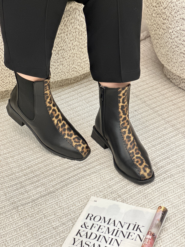 این بوت پلنگی بهراحتی با شلوار جین، شلوار پارچهای مشکی و حتی دامن و مانتوهای ساده ست میشود و به استایل شما ظاهری رمانتیک، زنانه و در عین حال جسورانه میبخشد. اگر بهدنبال نیم بوت زنانه خاص و ترندی هستید که هم راحت باشد و هم استایل شما را متمایز کند، این مدل میتواند گزینهای عالی برای شما باشد