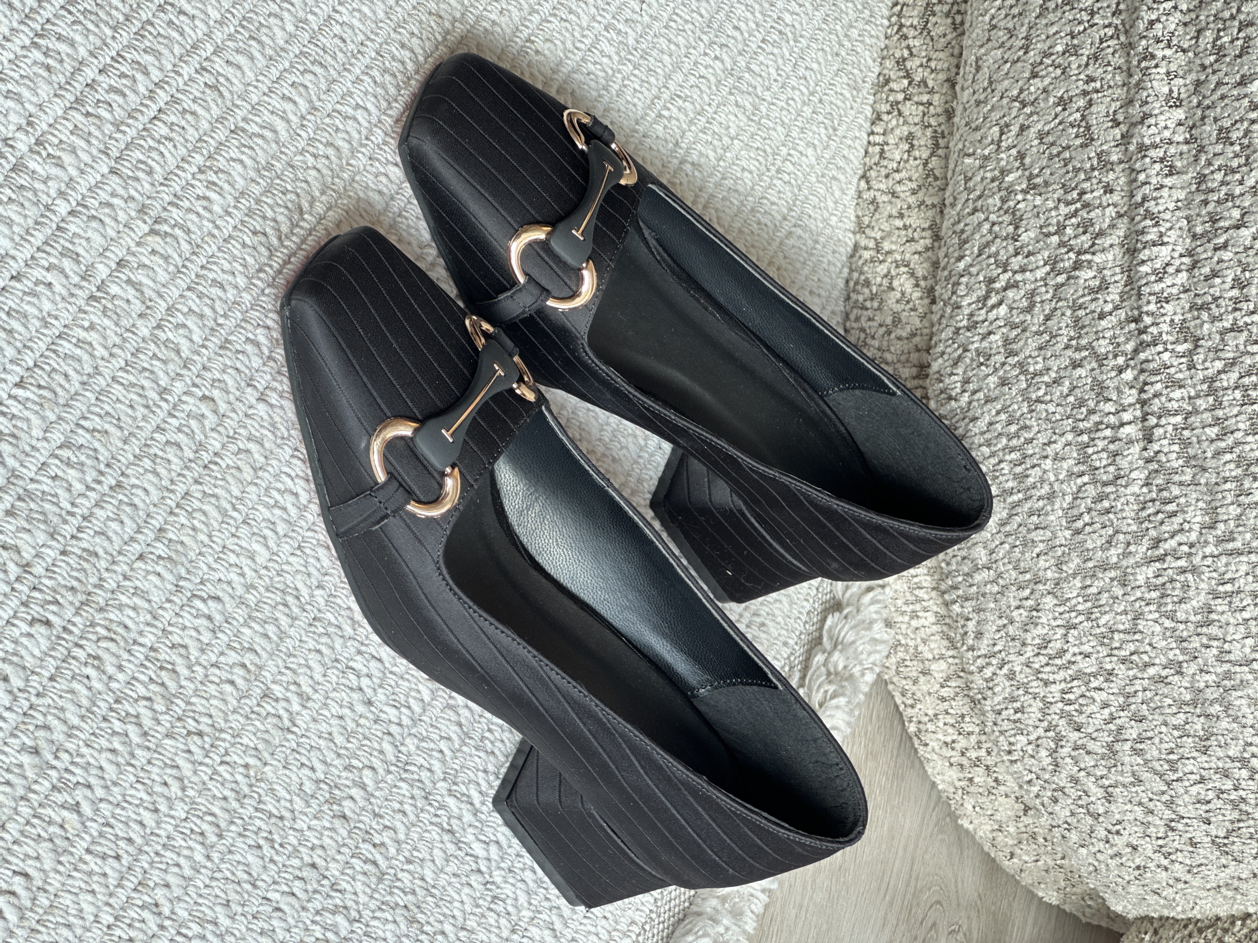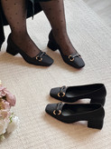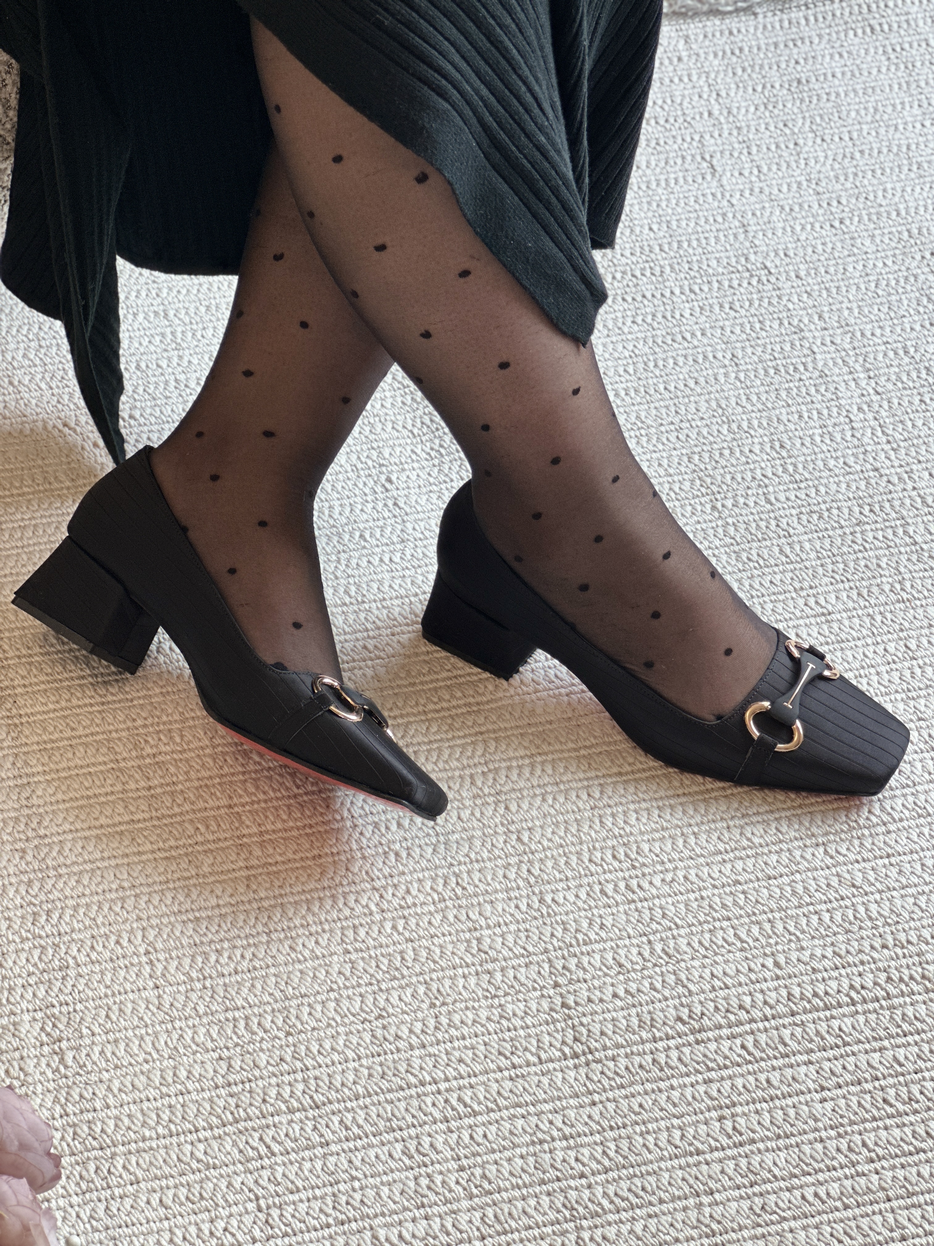 کفش کالج پاشنه‌دار زنانه مشکی با یراق فلزی | انتخابی خاص و کاربردی