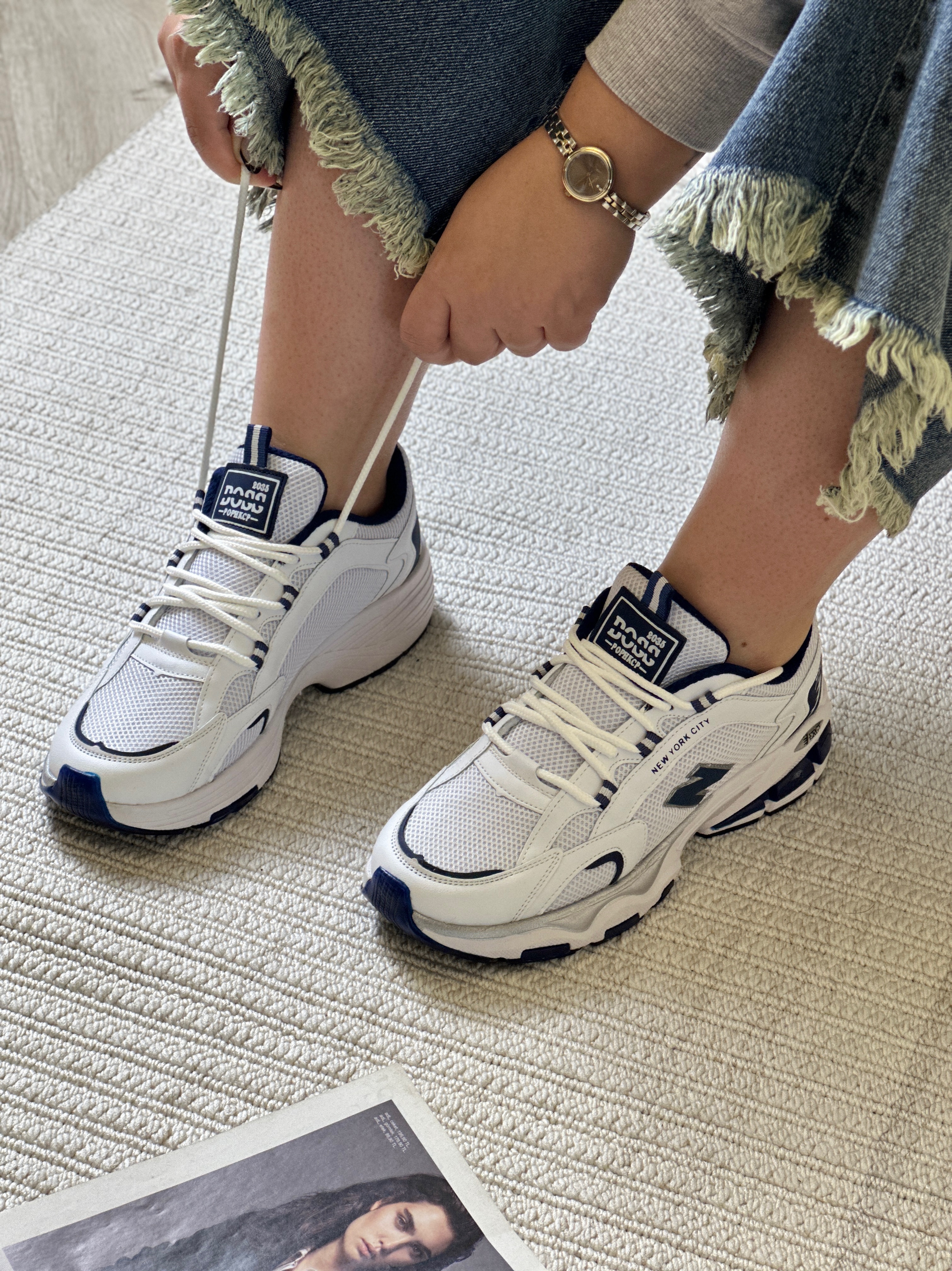 کتانی زنانه طرح نیوبالانس سفیدسرمه‌ای – کفش اسپرت راحتی روزمره
