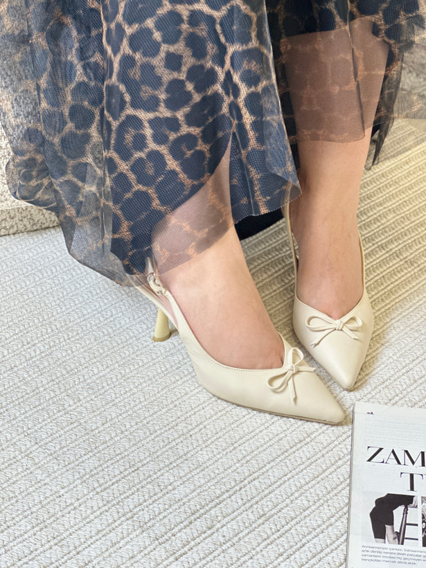 کفش پاشنه‌دار زنانه کرم – شیک و مجلسی