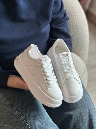 کتانی لژدار زنانه طرح Miu Miu سفید تمام