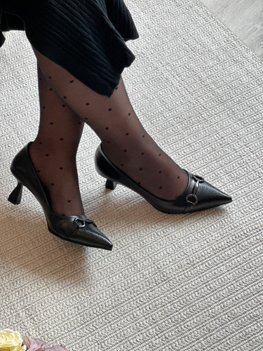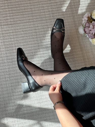 کفش کالج پاشنهدار زنانه مشکی با یراق فلزی | انتخابی خاص و کاربردی
