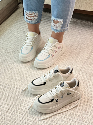 کتانی لژدار زنانه طرح Miu Miu سفید سرمهای