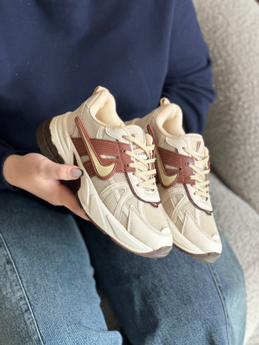 کتانی طرح نایک V2K زنانه رنگ موکا | اسپرت سبک و راحت برای استفاده روزمره