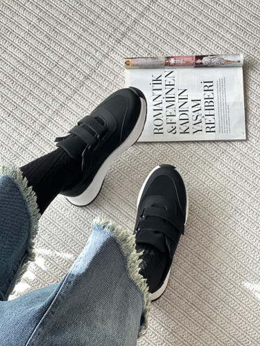 کتانی زنانه مشکی راحتی چسبی | کفش اسپرت سبک و مناسب پیادهروی روزمره
