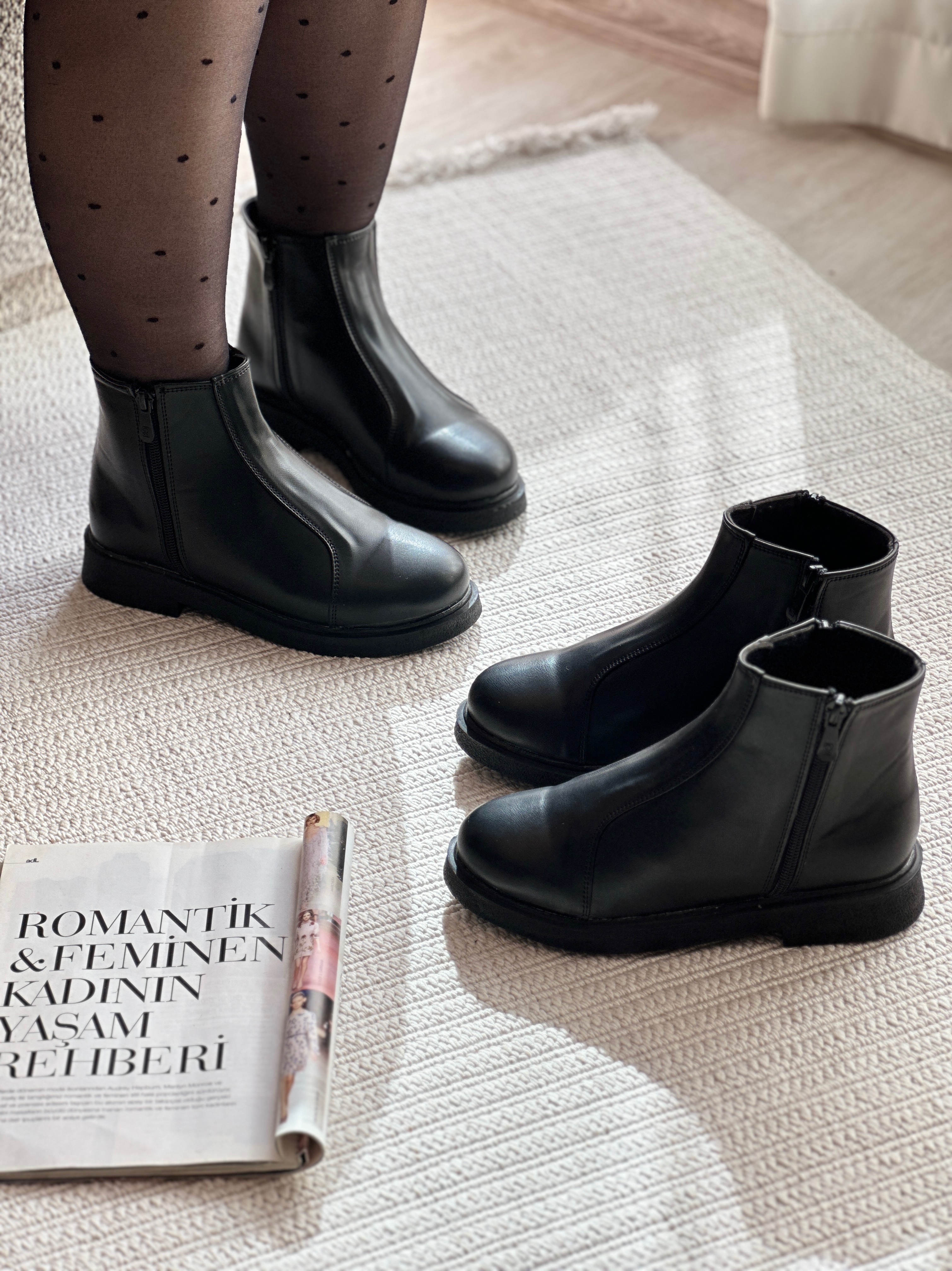 نیمبوت زنانه مشکی با زیپ کناری