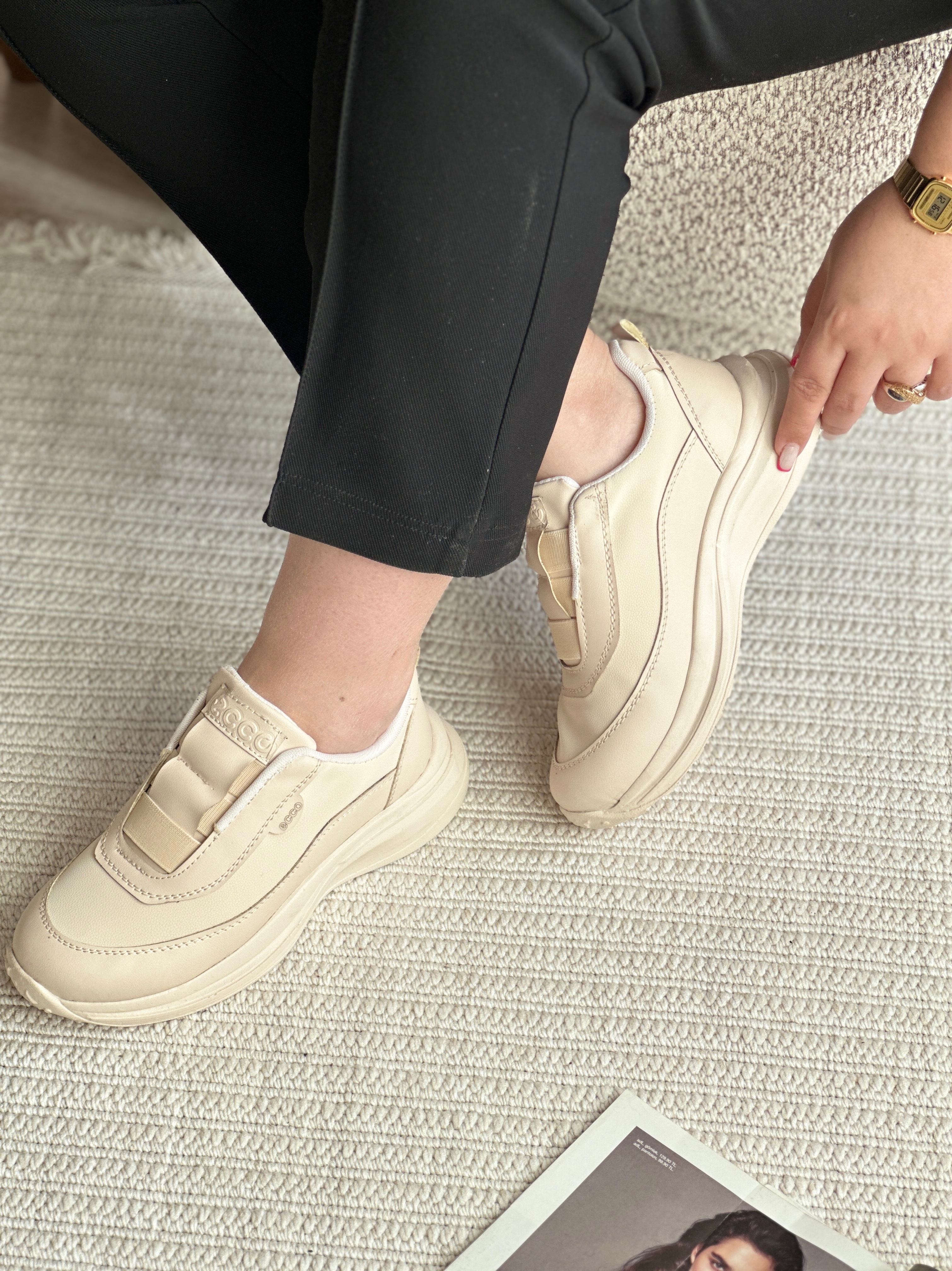 کتانی زنانه طرح LV با بند چسبی – رنگ کرم