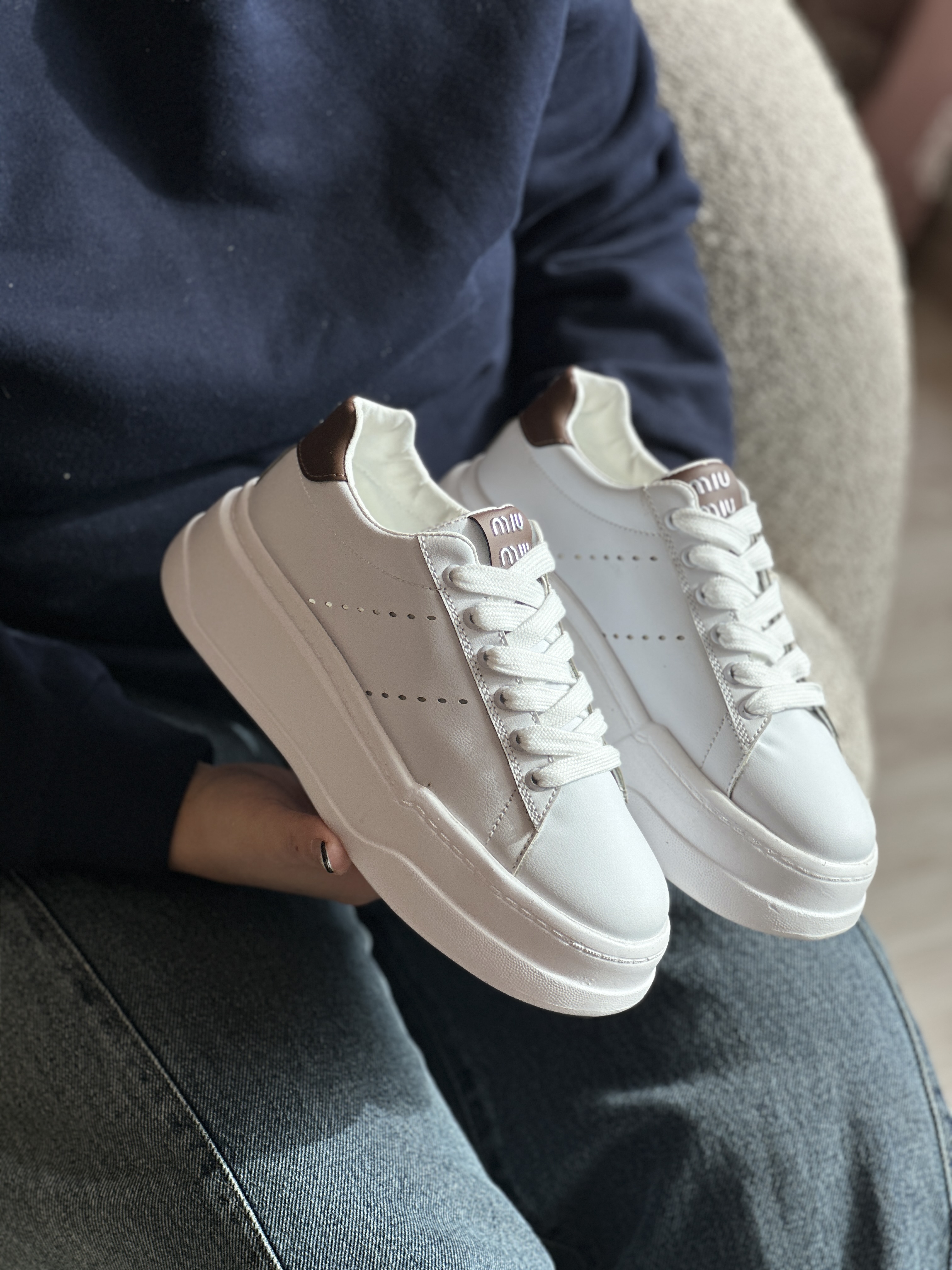 کتانی لژدار زنانه طرح Miu Miu سفید قهوهای
