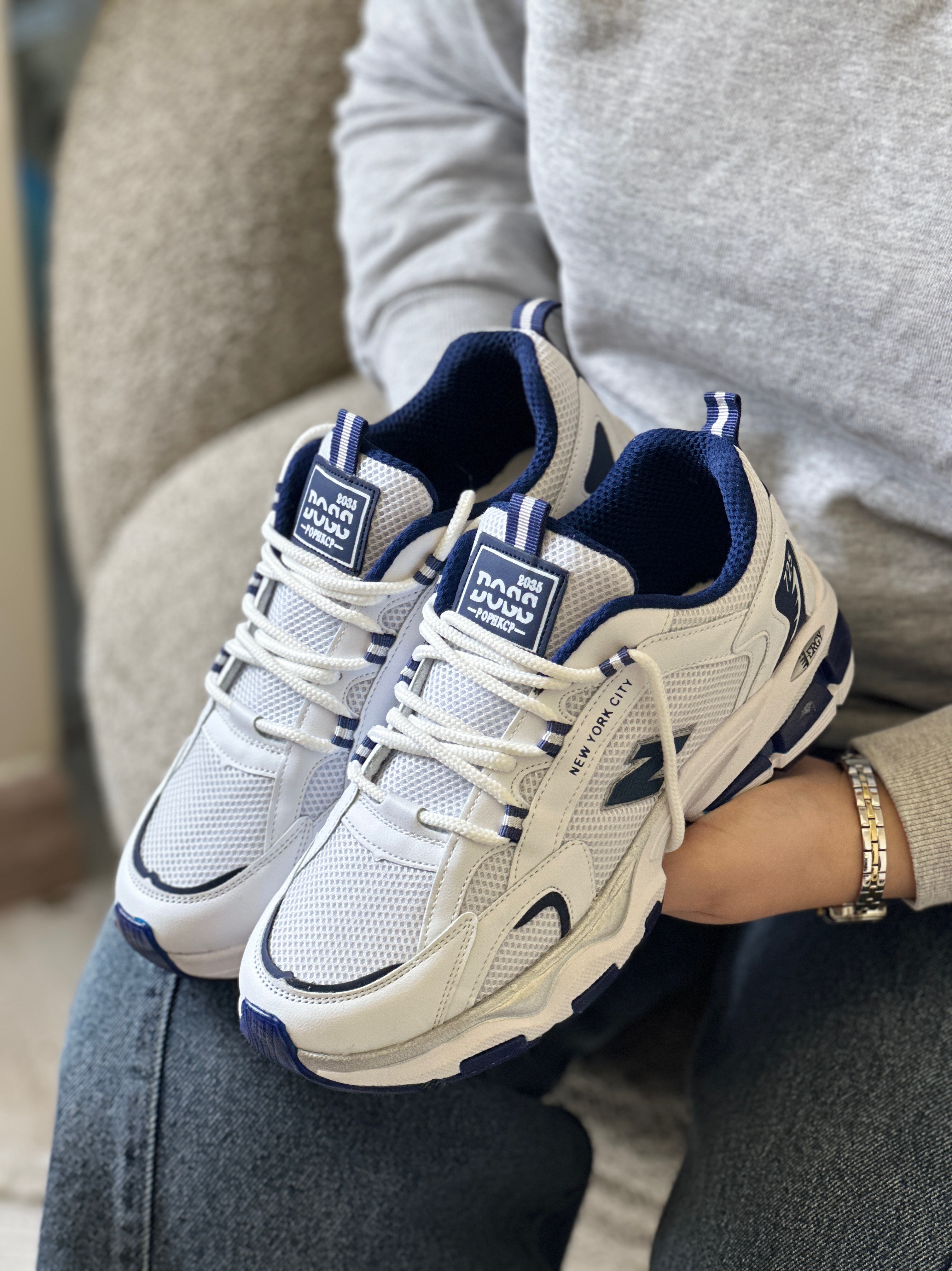 کتانی طرح نیوبالانس زنانه سفید/سرمهای | کفش اسپرت راحت و شیک