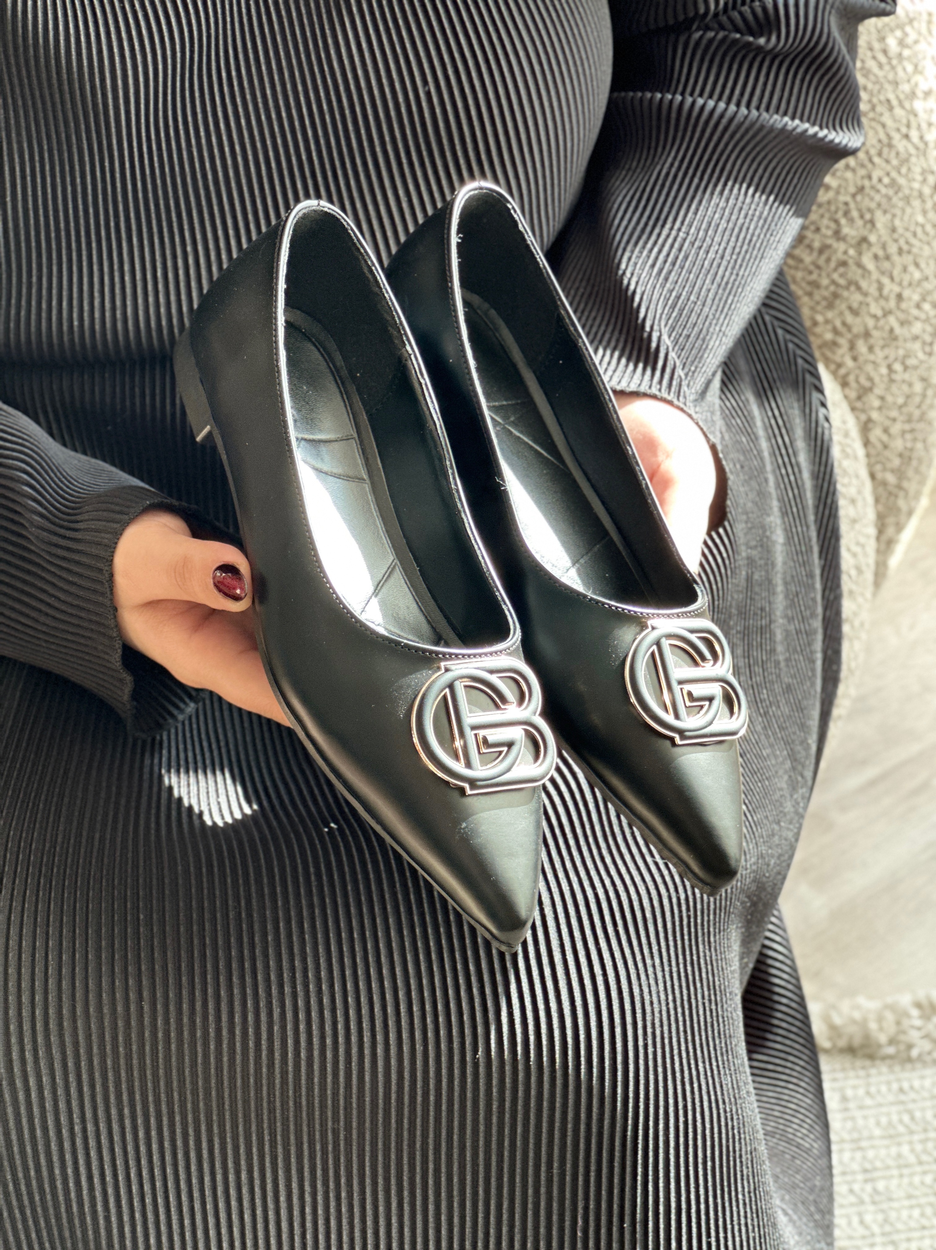 کفش کالج پاشنهدار زنانه مشکی با یراق فلزی | انتخابی خاص و کاربردی