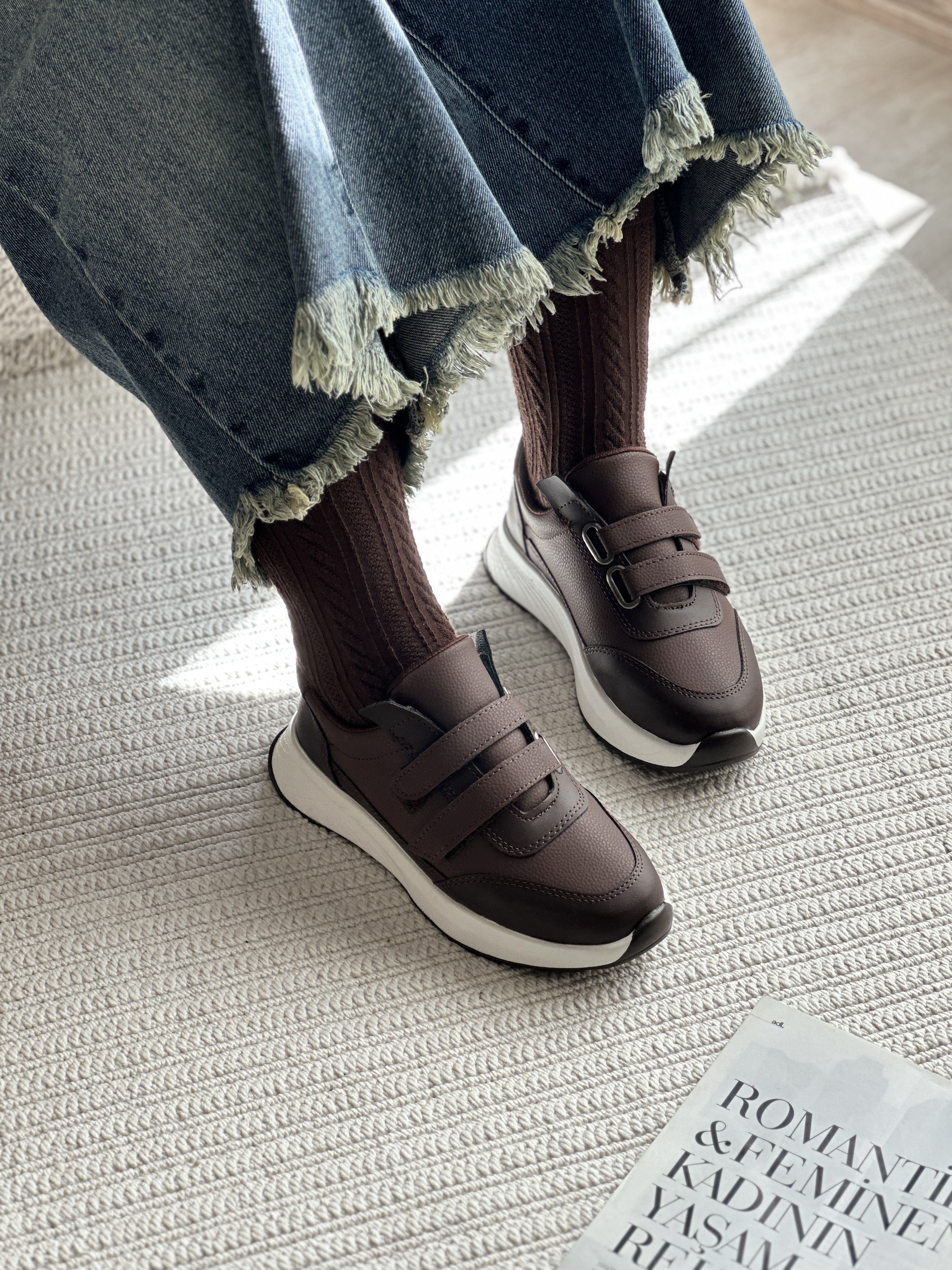 کتانی زنانه قهوهای راحتی چسبی | کفش اسپرت سبک و مناسب پیادهروی روزمره